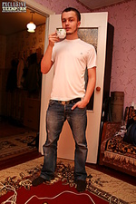 Photo set of a blonde teenage babe doing perfect blow and hand job to her sexy boyfriend with meaty rod